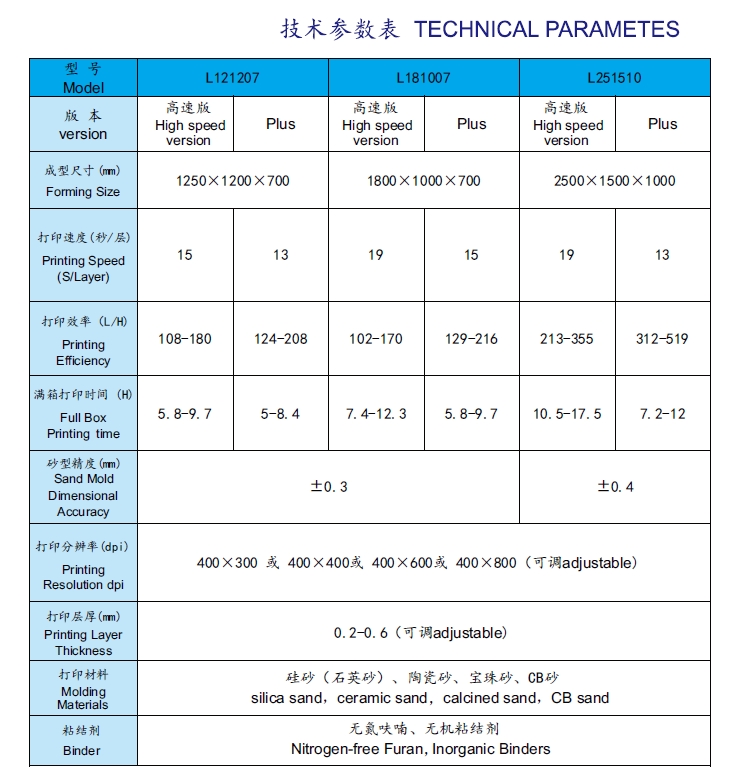 The centerpiece was the L181007 Sand 3D Printer, featuring a build volume of 1.8 × 1.0 × 0.7 m, purpose-built for large-scale, batch sand mold production. Orders for this system were placed by Changzhou CRRC Auto Parts Co., Yichun Nuobot, and Chongqing Craftsman Foundry. Additionally, Wuan Kunyue Metal Products Co. and Jingzhou Jinglong Aerospace Technology Co. acquired the larger L251510 model.