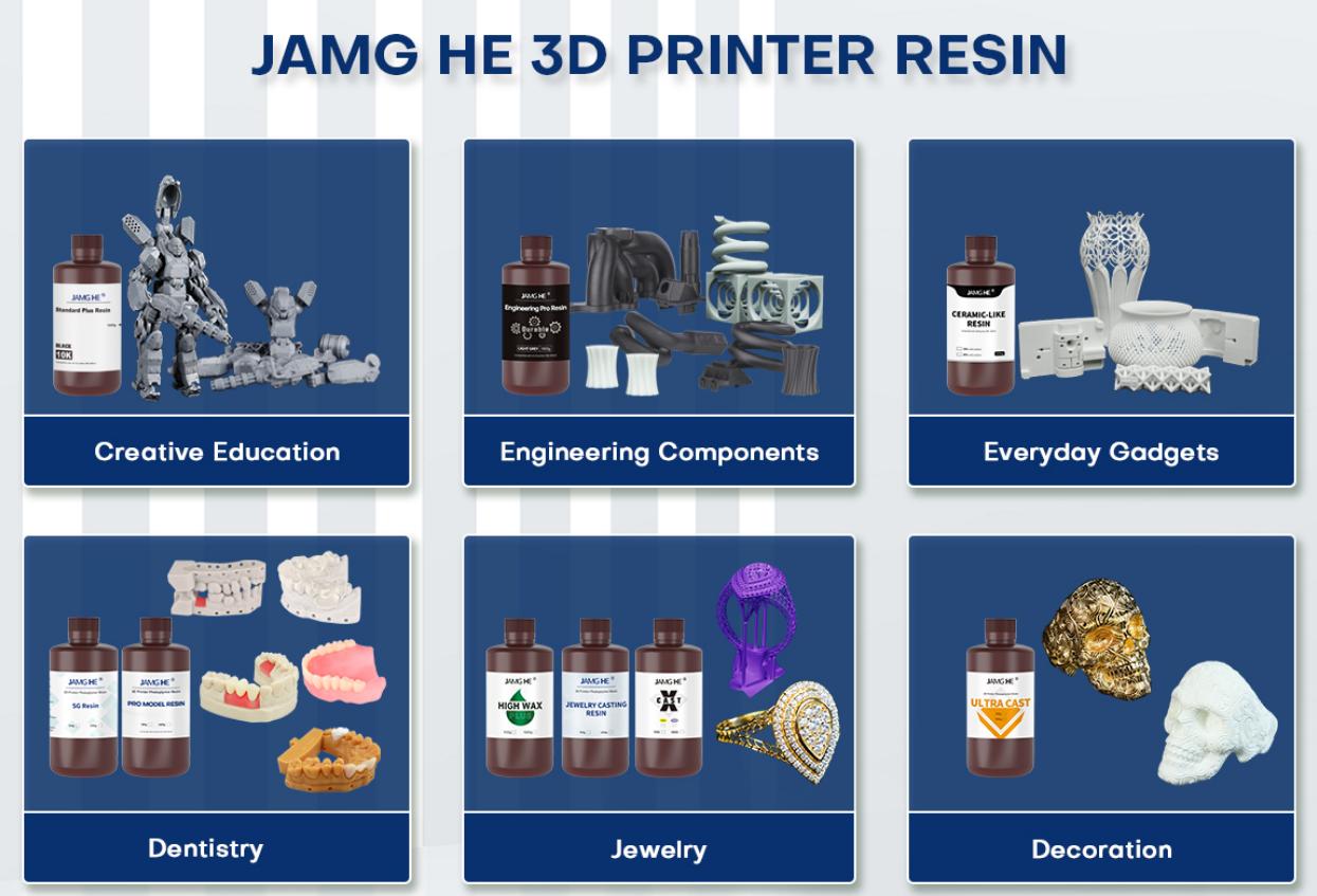 Shenzhen Yongchanghe Technology Co.,Ltd.with the brand JAMG HE is a subsidiary of MEG group which specializes in UV curing since 2001, headquarters located in Shenzhen, 20,000sqm international standard chemical factory equipped with advanced production equipment and modern production lines, including about 30 reaction stills and plastic modify machines. △JAMG HE Self-build factory in Yangjiang city High resolution 14K Ultra Fine 3D printer will be shown on Formnext Expo, it has built-in heater and air purifier, App monitor the printing status, suitable for jewelry, dental, prototypes printing field. JAMG HE UV Printers take imported professional high accuracy nozzle, suitable for medium-scale business, it’s low investment and high return. After printed on FDM printers or 3D resin printers, UV printer makes the printed models more colorful and beautiful, looks stereoscopic and has 3D visual effects. It supports personalized customization on many materials such as leather, wood, PVC, metal, glass etc. Support variety of processes such as flat, embossed, hollow, partial, frosted. The printed models are bright color and scratch resistance, environmental protection and energy saving. JAMG HE uv ink is immediately dry after printing, it’s low odor and high print quality. JAMG HE eco-friendly 3d printer resin widely compatible with various LCD printers. Products include: Hi-speed standard resin, water washable resin, art-engineering like resin, flexible resin, elastomer resin, flame retardant resin, anti-static resin, glow in dark resin, thermochromic resin, acrylic like resin. JAMG HE jewelry high wax resin is easy castble and high precision, dental resin already got FDA, medical CE, Bio-compatible and ISO 13485 certificate. JAMG HE high pure FDM filament use imported raw materials, no warping and stable printing quality. Product includes: Hi-speed PLA+, High speed PETG, PLA, PETG, CF-PLA, LW-PLA,GF-PLA, Wood PLA, Marble PLA, Matt PLA, Silk PLA in mono and dual color and tri-color. Multi colors optional. JAMG HE factory already got 60+ invention patents and utility model patents. R&D dept commit to providing the world's leading 3D printing additive materials, specializing in the research, development, sale and service of 3d printers, UV flat printers, 3d printer materials and UV inks, and are committed to exploring potential applications of 3d printer resin & 3d printer filament in various fields such as jewelry, dental, medical, aerospace, education etc. We will continue to explore user experience so that more people and enterprises can enjoy the practical benefits of 3d printing. △3D Printer Resin Production △FDM Filament Production △Testing Lab Welcome to visit JAMG HE, any questions please contact info@jamghe.com |