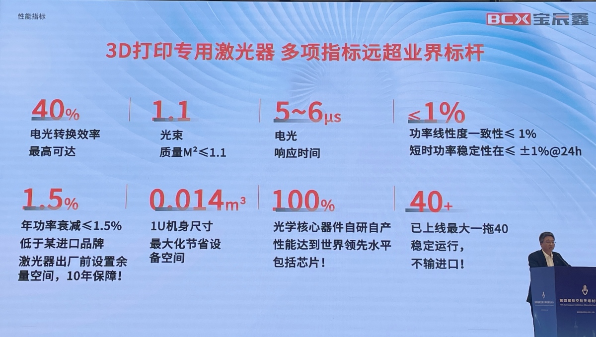 On October 24, 2024, the "Fourth Aerospace Additive Manufacturing Conference" convened in Shanghai, drawing over 500 professionals from the aerospace industry. Domestic laser manufacturer BCXLaser(宝辰鑫)(under MaxPhotonics) made an appearance, with General Manager Wu Huapeng delivering a keynote presentation titled "High-Stability, High-Efficiency Laser Solutions Empower High-Quality Additive Manufacturing." MaxPhotonics, established in 2004, stands
