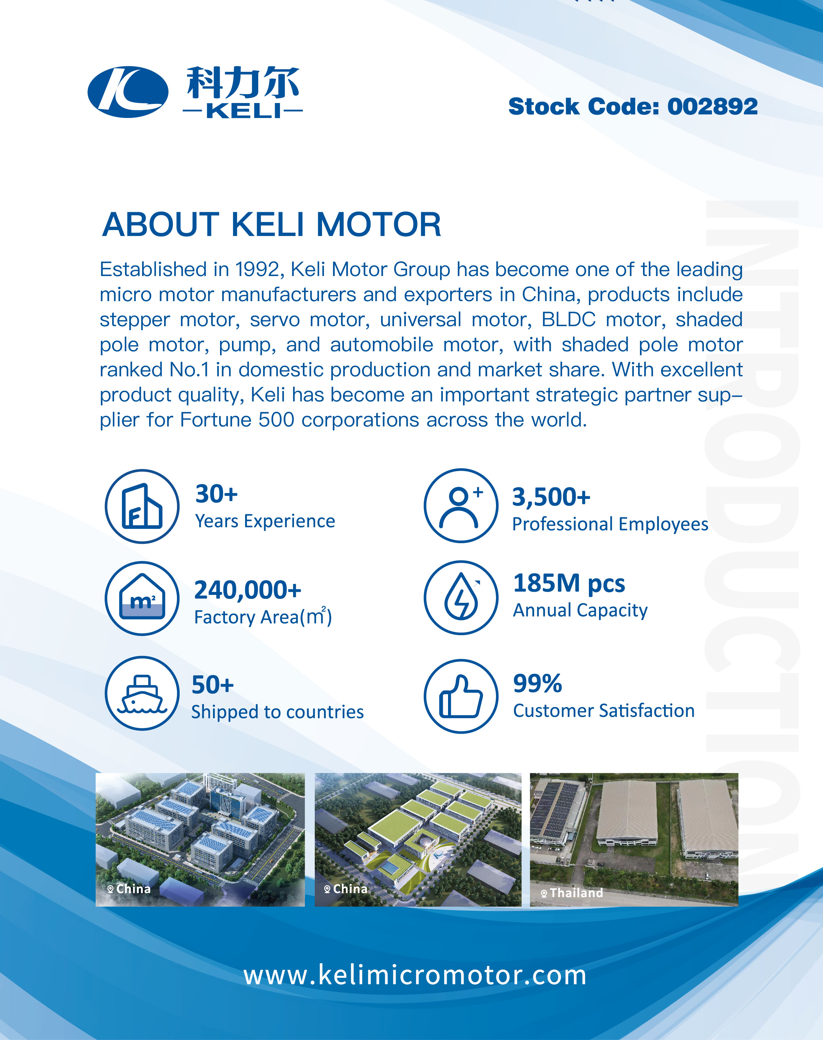 ABOUT KELI MOTOR Established in 1992, Keli Motor Group has become one of the leading micro motor manufacturers and exporters in China, products include stepper motor, servo motor, universal motor, BLDC motor, shaded pole motor, pump, and automobile motor, with shaded pole motor ranked No.1 in domestic production and market share. With excellent product quality, Keli motors have been exported to over 30 countries and regions including the United States, Germany, Italy and Spain, and an important partner to global Fortune 500 corporations. Keli products serve a broad range of industries including intelligent household appliance, 3D Printer, intelligent security, industrial robot, industrial automation and new energy. With the advanced technology of control system and high-performance motor, we will build a world-class Chinese national brand of micro motor. During this Formnext exhibition, Keli Motor mainly displays featured stepper motors and servo motors, with Nema 14 and 17 widely used in 3D printers.Our booth number is 12.1-A15,it would be a great pleasure to meet you at the exhibition, thank you! |
