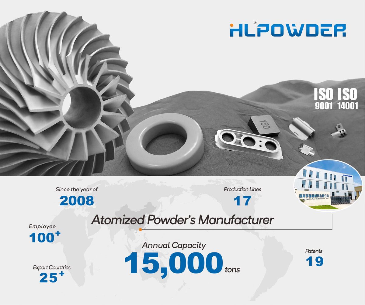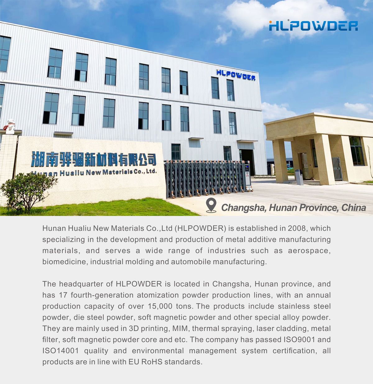 Hunan Hualiu New Materials Co.,Ltd (HLPOWDER) is established in 2008, which specializing in the development and production of metal additive manufacturing materials, and serves a wide range of industries such as aerospace, biomedicine, industrial molding and automobile manufacturing. The company headquartering in Changsha, Hunan province, and has 17 fourth-generation gas atomization powder production lines, with an annual production capacity of over 15,000 tons. The products include stainless steel powder, high-temperature alloy powder and cobalt powder. HLPOWDER has passed ISO9001 and ISO14001 quality and environmental management system certification, all products are in line with EU RoHS standards. |