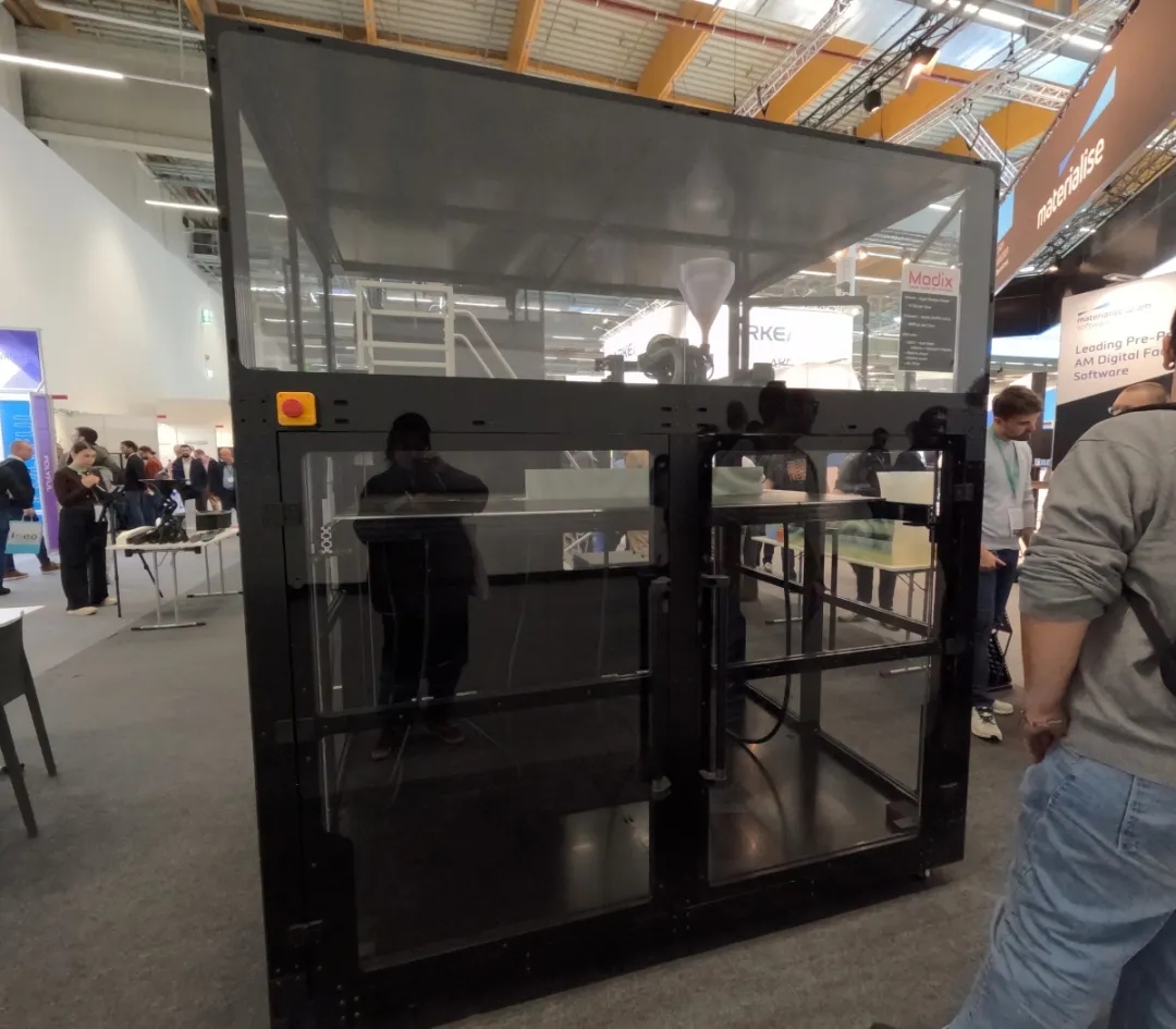 VII. Heated Competition in the Pellet-Based FGF Market Pellet-based fused granulate fabrication (FGF) 3D printing has become a competitive frontier in Europe. Numerous exhibitors featured large-format gantry systems and robotic arm setups capable of printing furniture, architectural models, reception desks, molds, and more. The fierce competition highlights the growing importance of this sector in the European market.