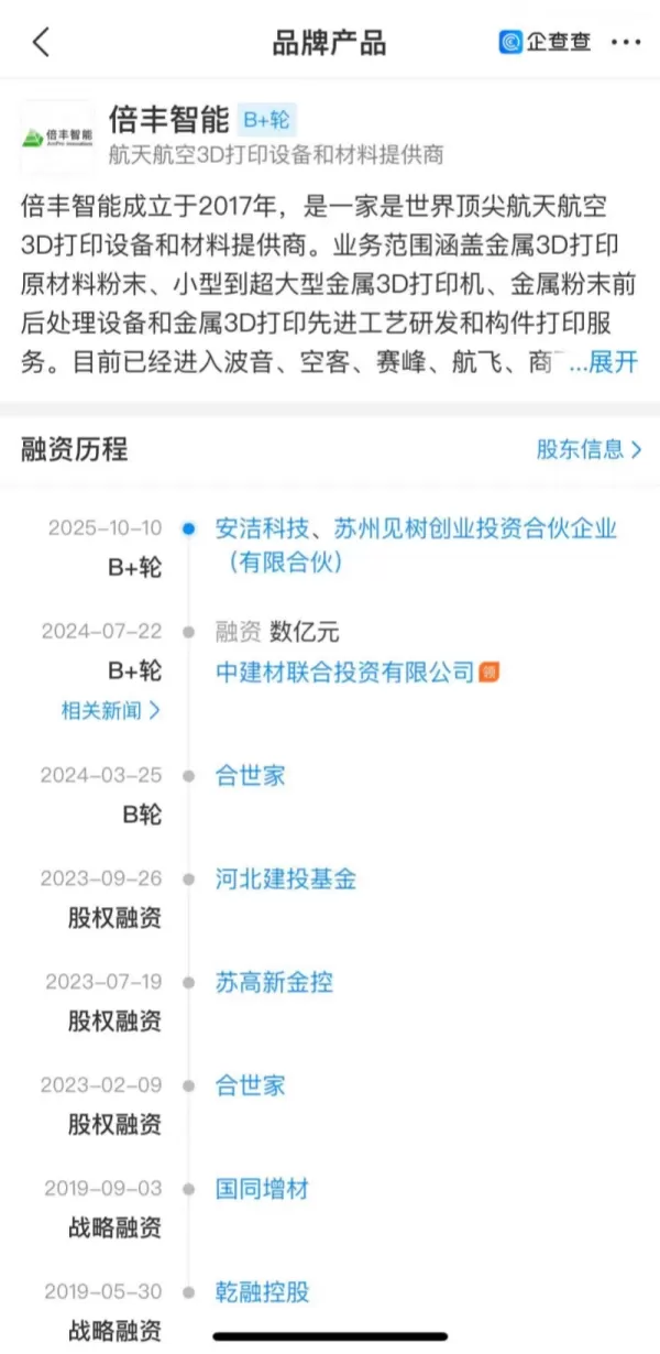 A Continuous Magnet for Capital Over the past three years, AmPro Innovationst has consistently attracted strong investor confidence. In July 2024, the company secured hundreds of millions of yuan in a previous B+ financing round led by Zhonglian Investment, with existing shareholder Heshijia increasing its stake. The sustained capital inflow has significantly enhanced Beifeng’s competitiveness in the metal additive manufacturing sector, fueling its rapid expansion and technological advancement.