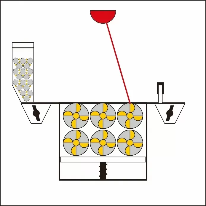 Step 2 — Laser Printing The coated metal powder is sintered using a laser, melting only the polymer binder. Because no full metal melting occurs, printing is up to 30× faster than standard SLM. Even complex, suspended geometries require no support structures or base plates — parts can be freely arranged within the powder bed for maximum packing density, and leftover powder is fully recyclable.