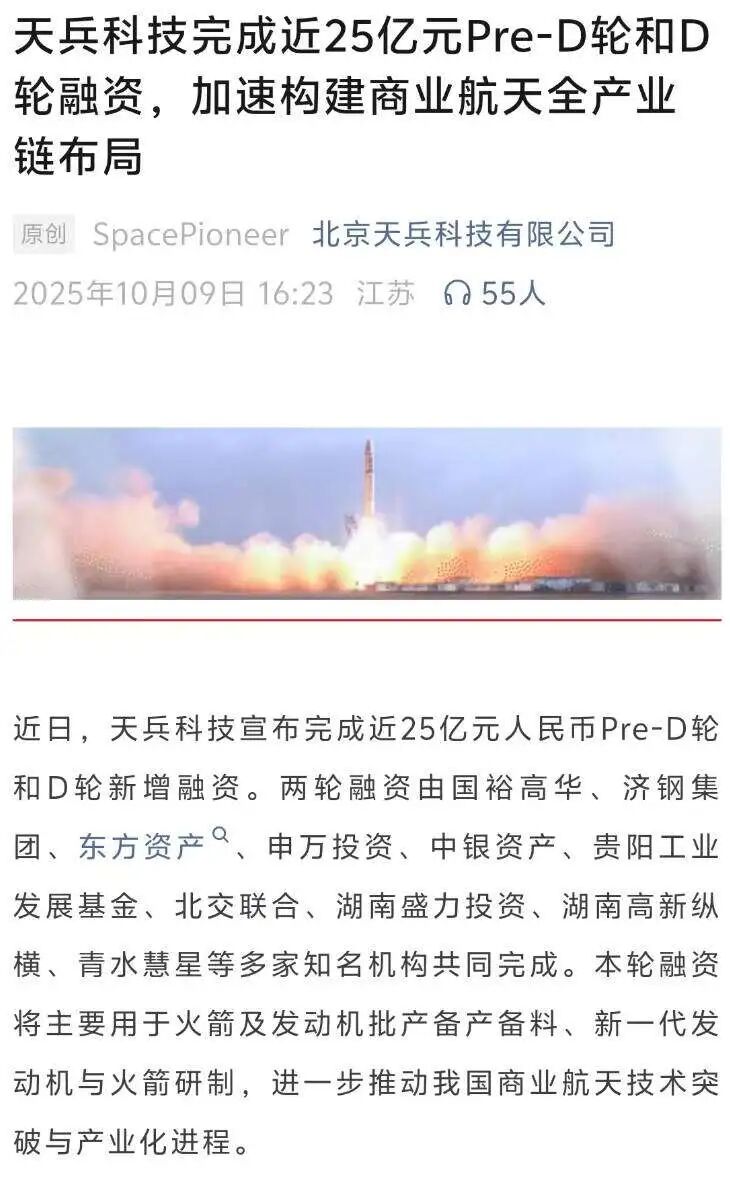 Industry experts note that this round of financing will further strengthen Tianbing’s leadership in liquid rocket design, mass manufacturing, and reusability technologies, propelling China’s commercial space sector from individual breakthroughs toward systematic, large-scale, and industrialized growth — accelerating the nation’s progress toward becoming a global space power.