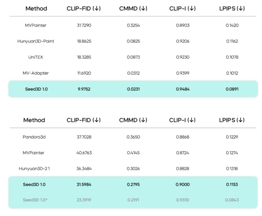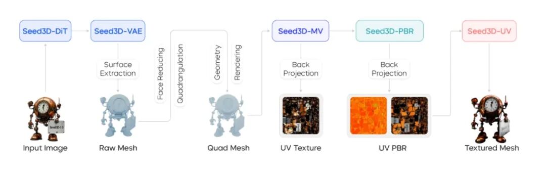 · Geometry Generation Module: · Texture Generation Module: Performance benchmarks show that the 1.5B-parameter Seed3D model surpasses the 3B-parameter Hunyuan3D-2.1 in geometry detail retention and structural integrity — a remarkable display of parameter efficiency. Moreover, the generated assets can be directly imported into physics simulators such as Isaac Sim, requiring minimal adaptation for embodied AI training. Through a stepwise “object extraction → individual modeling → spatial assembly” approach, Seed3D can also extend single-object generation into complete scene creation — from offices to full urban landscapes.